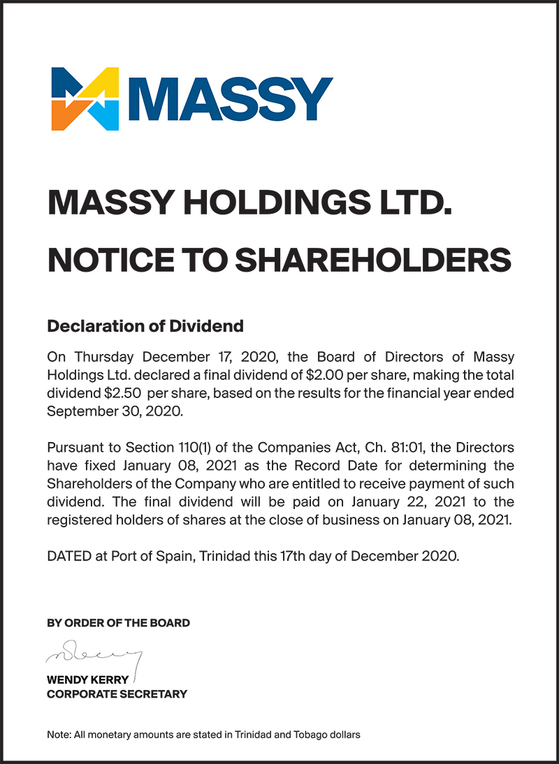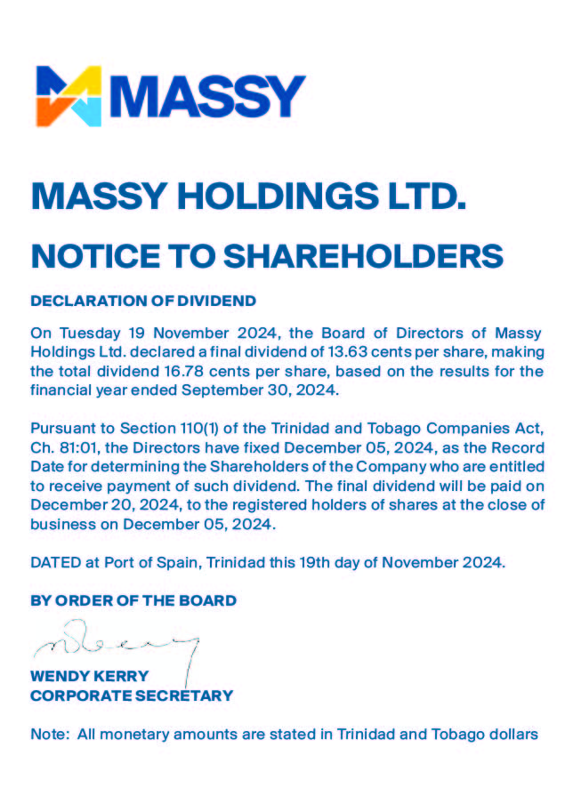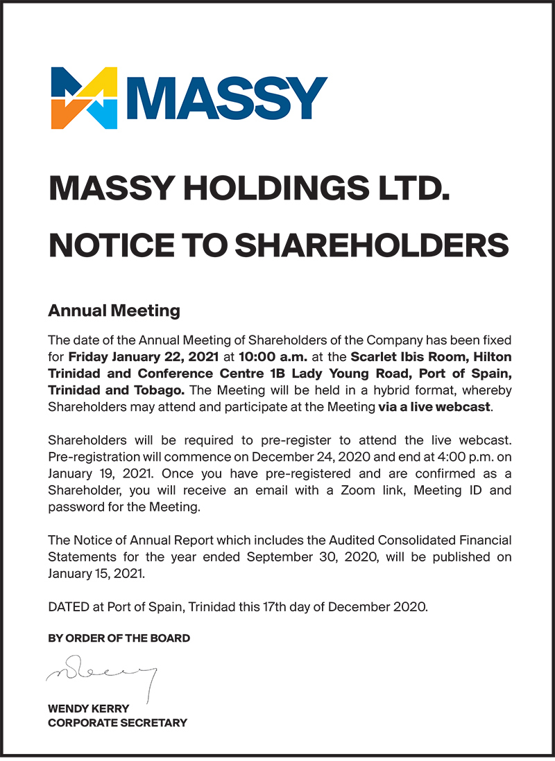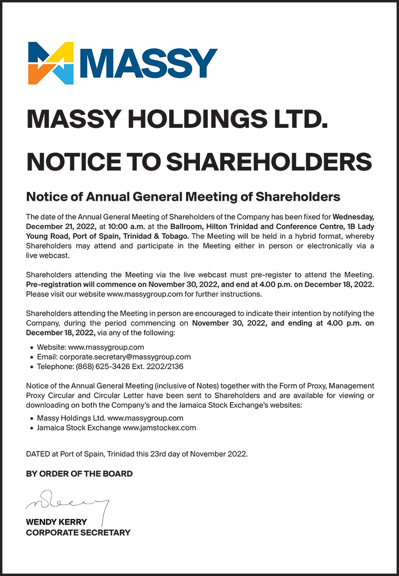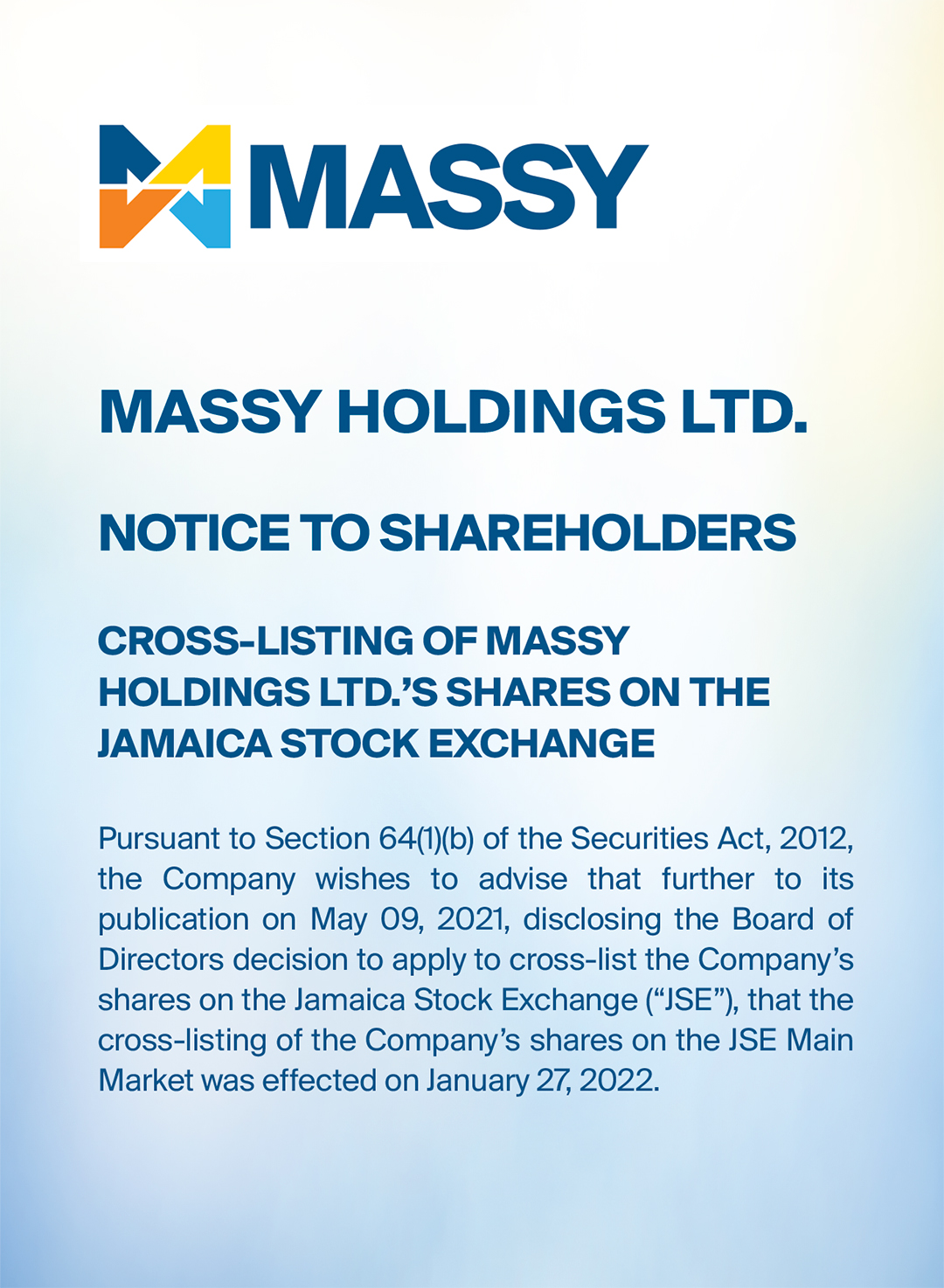 Notice to Shareholders – Cross-Listing of Massy Holdings Ltd.’s shares on the Jamaica Stock Exchange