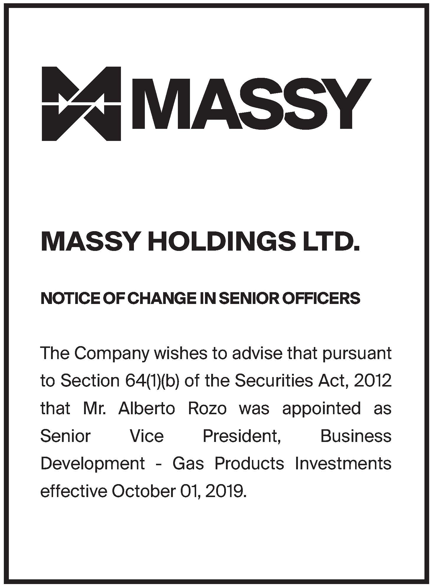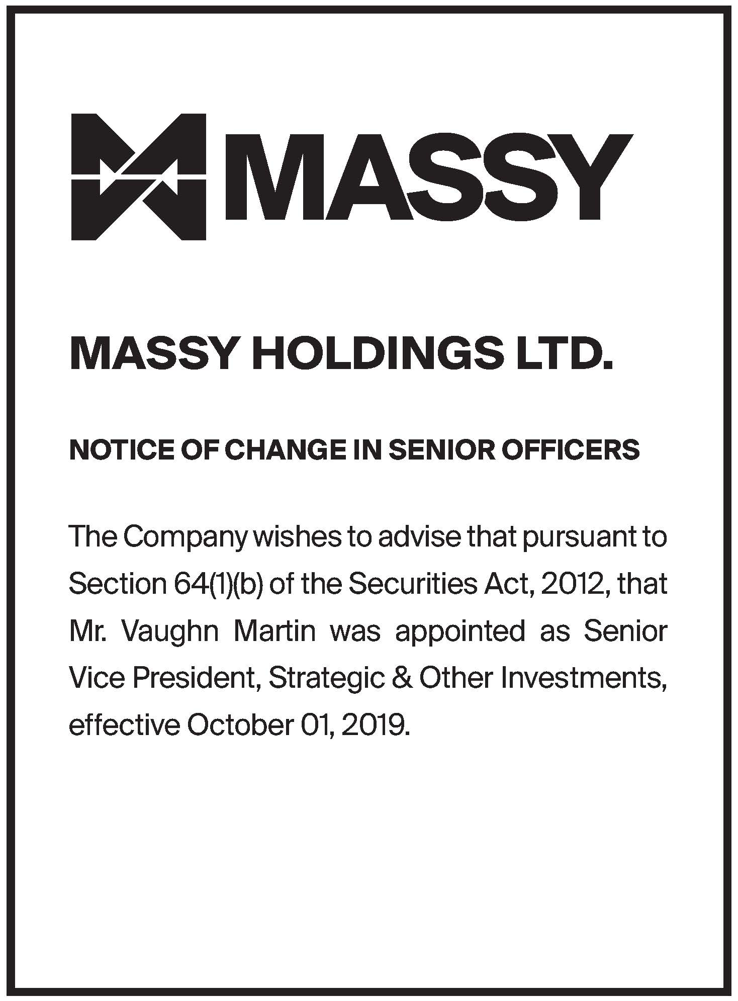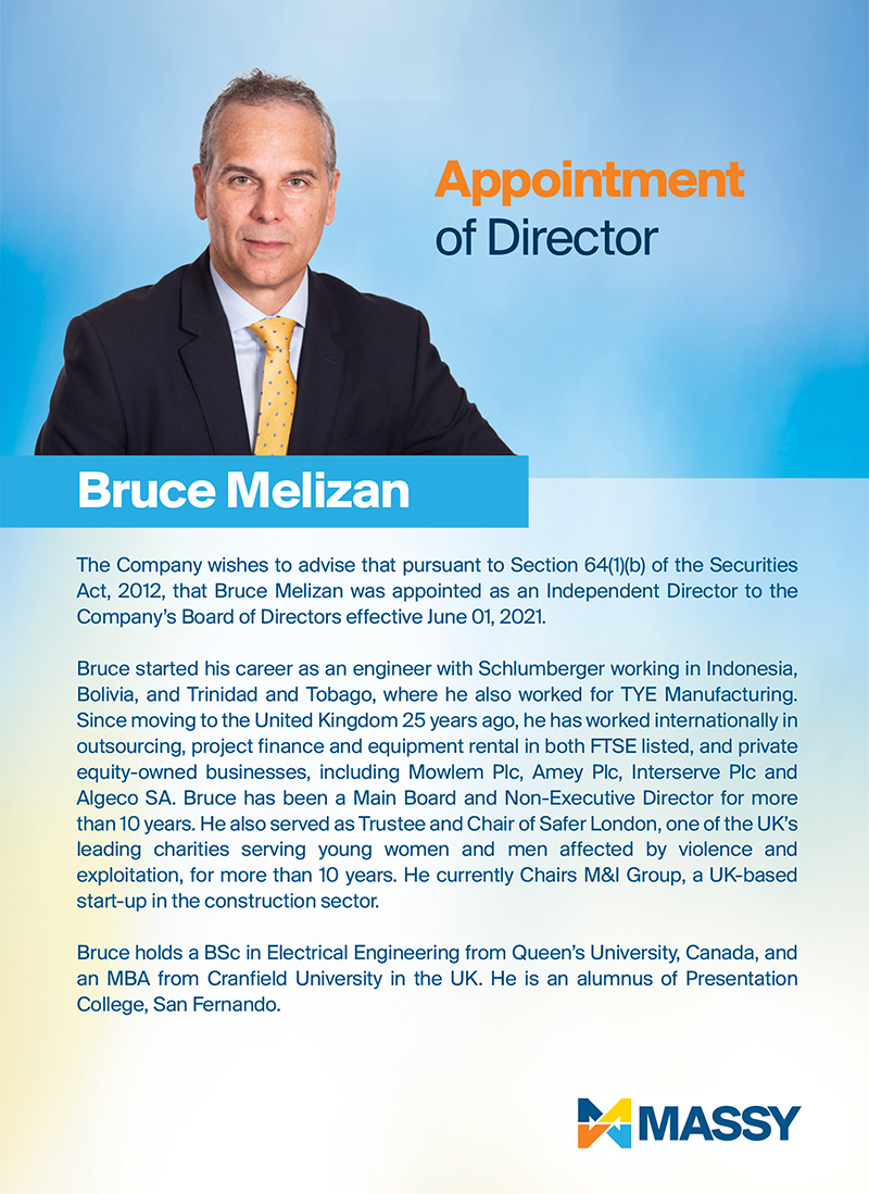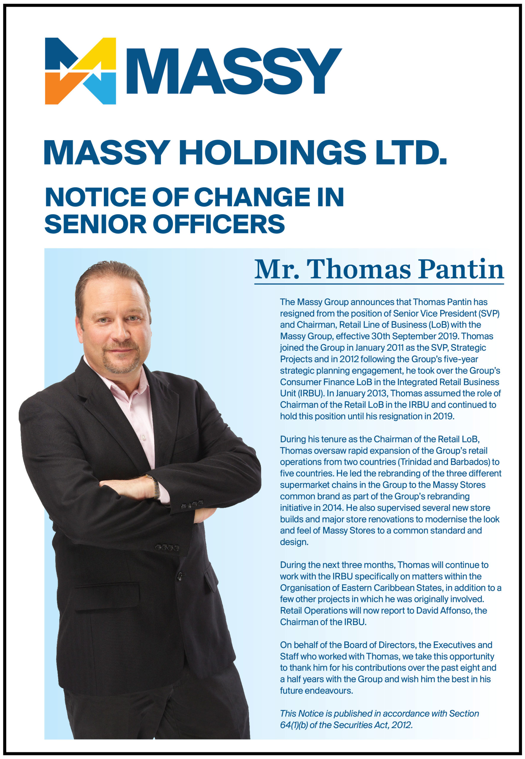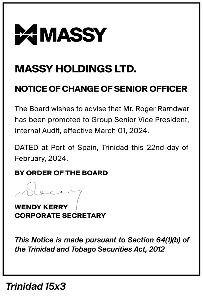 Massy Holdings Change in Senior Officer – Peter Graham