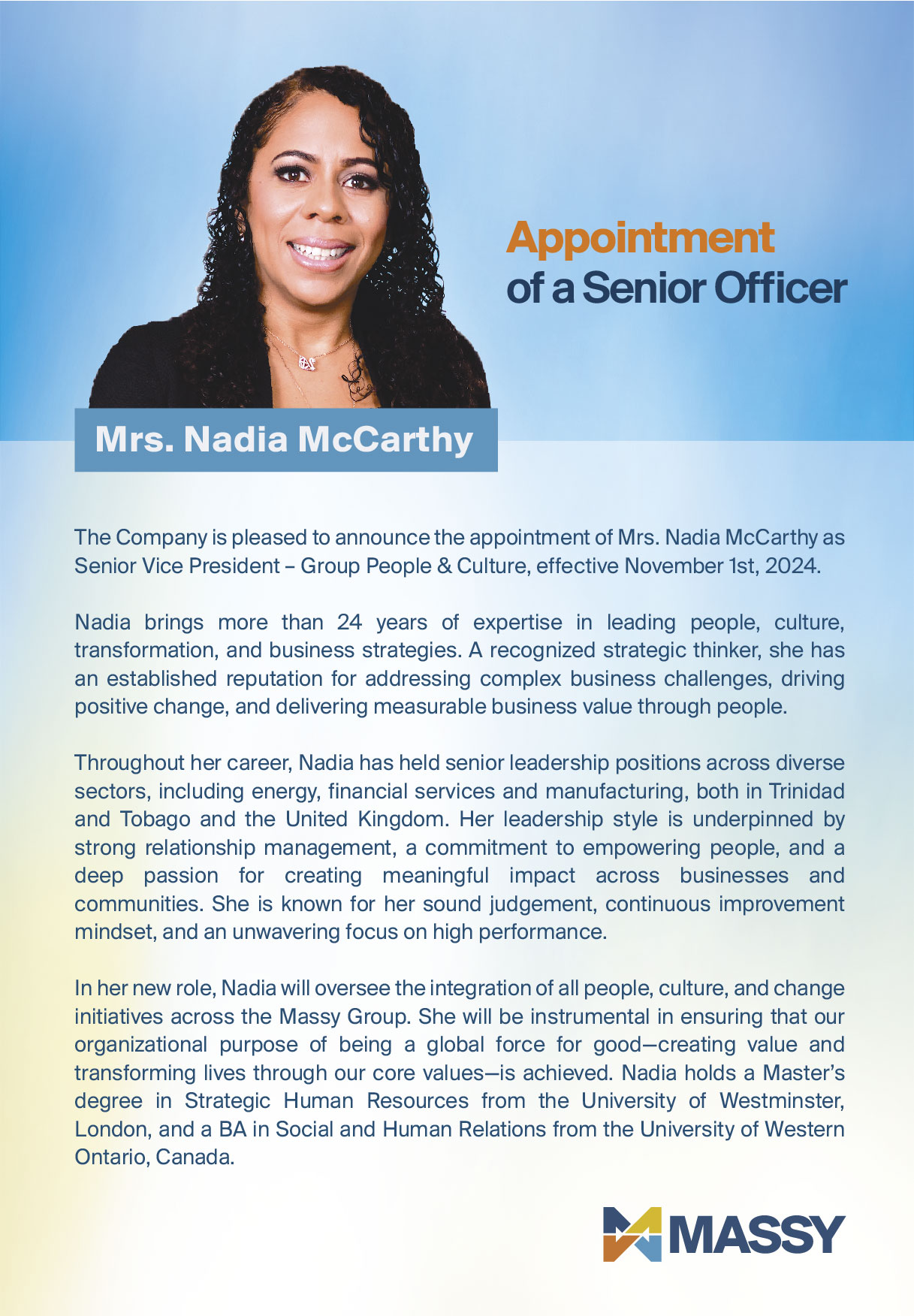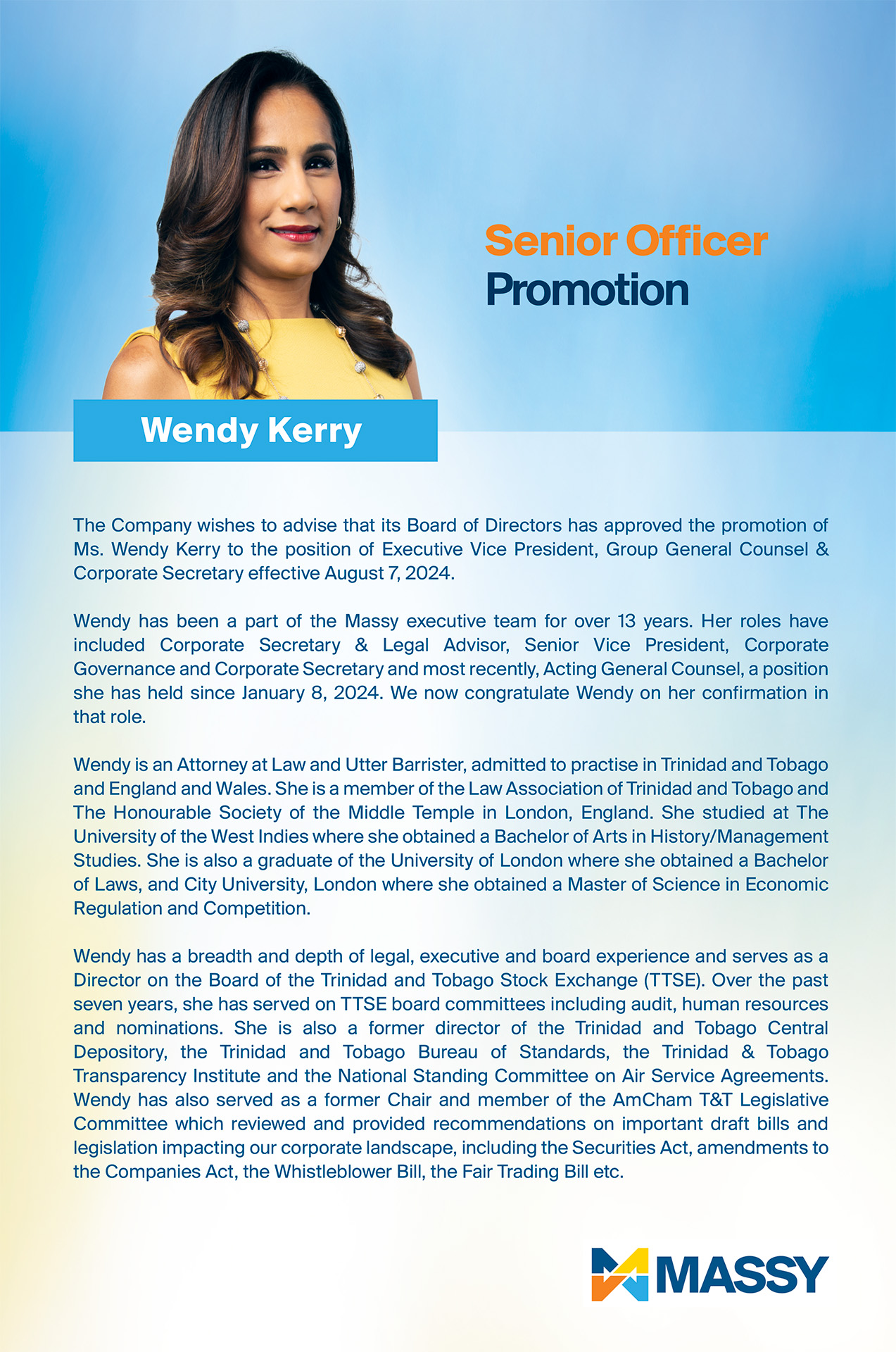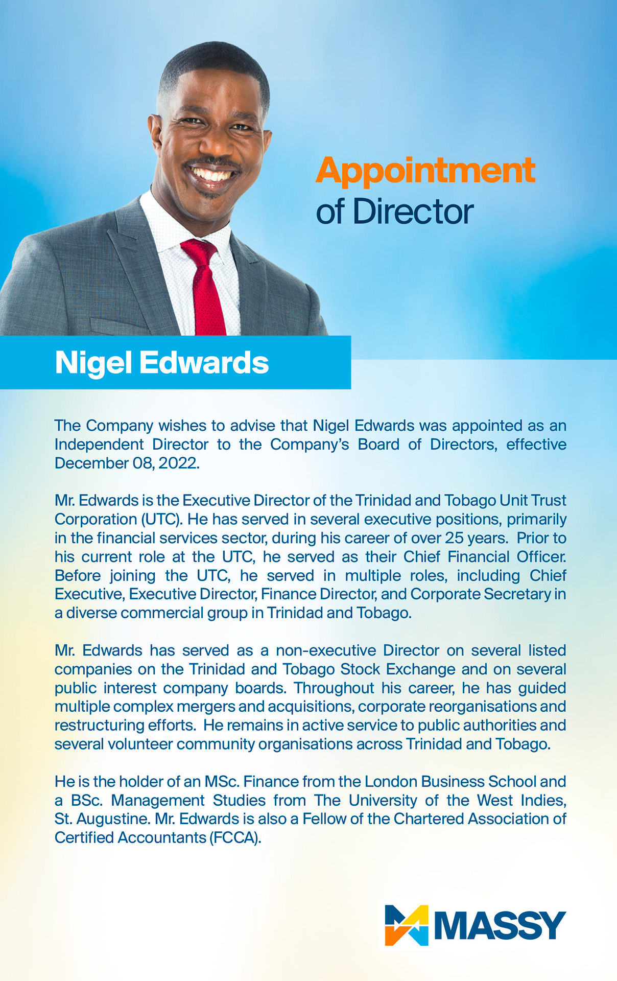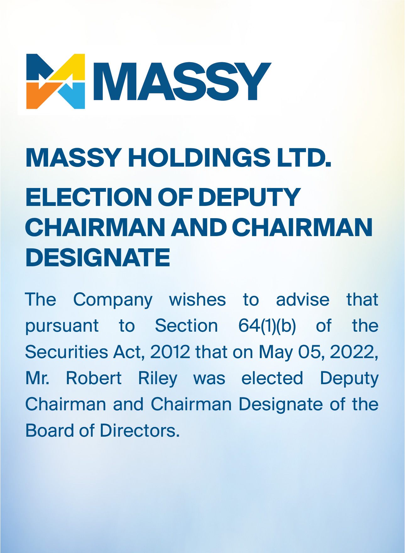 Massy Holdings Change in Senior Officer – Peter Graham