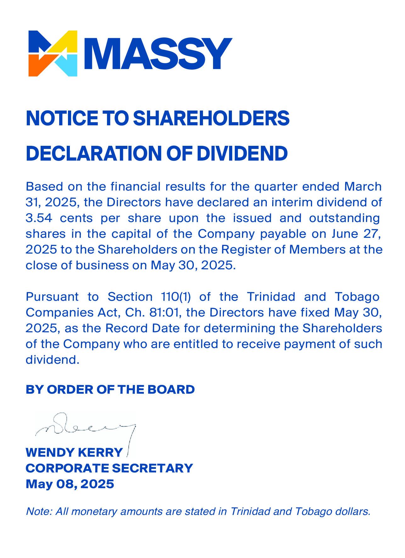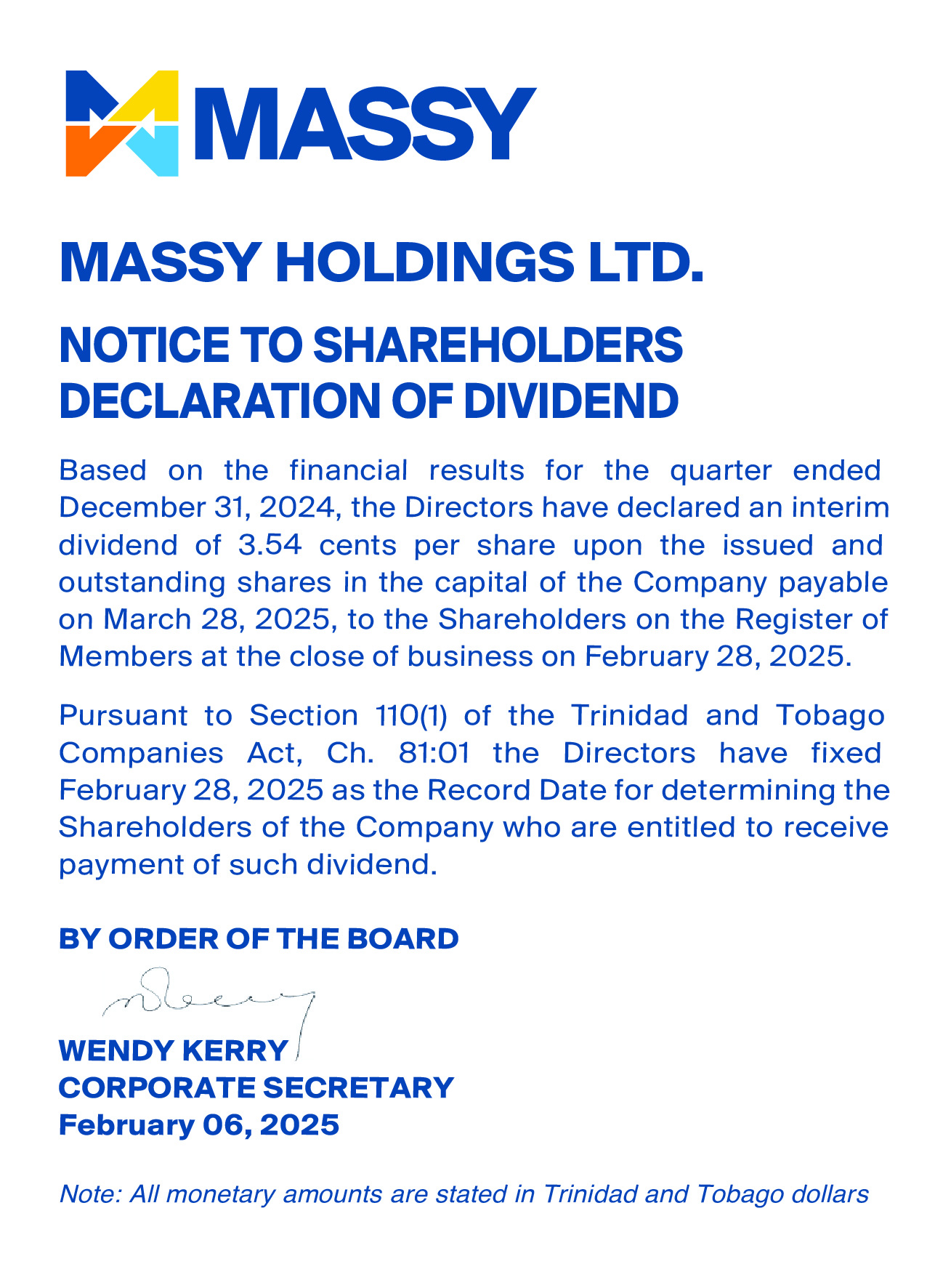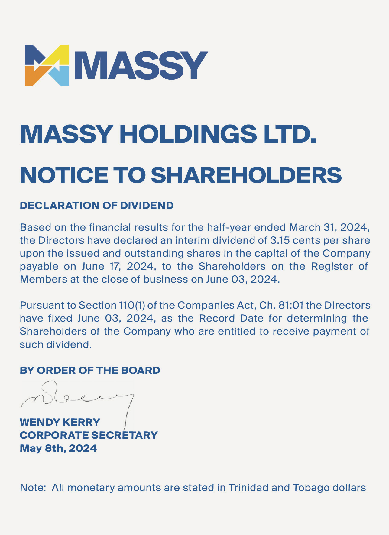 Circular Letter to Massy Holdings Ltd.’s Shareholders