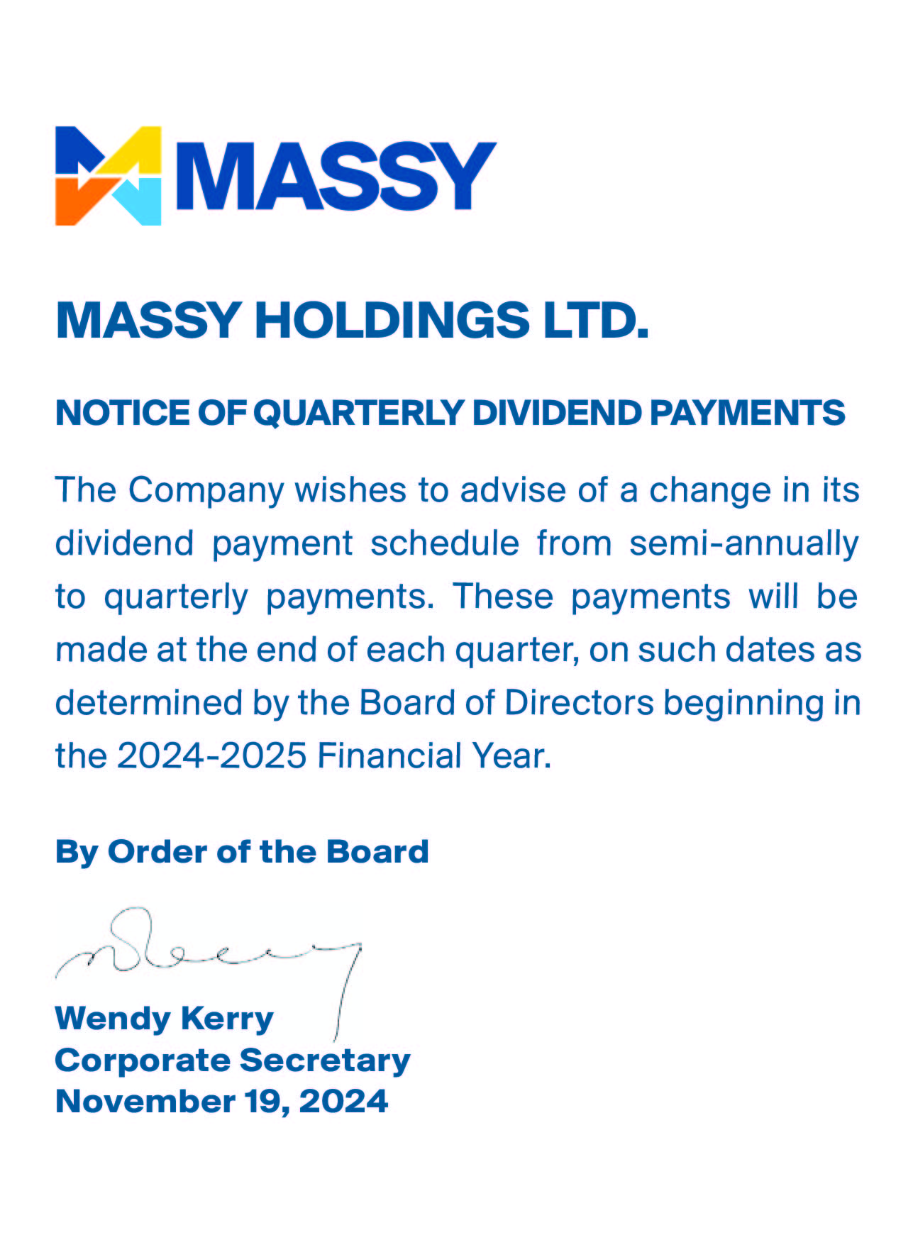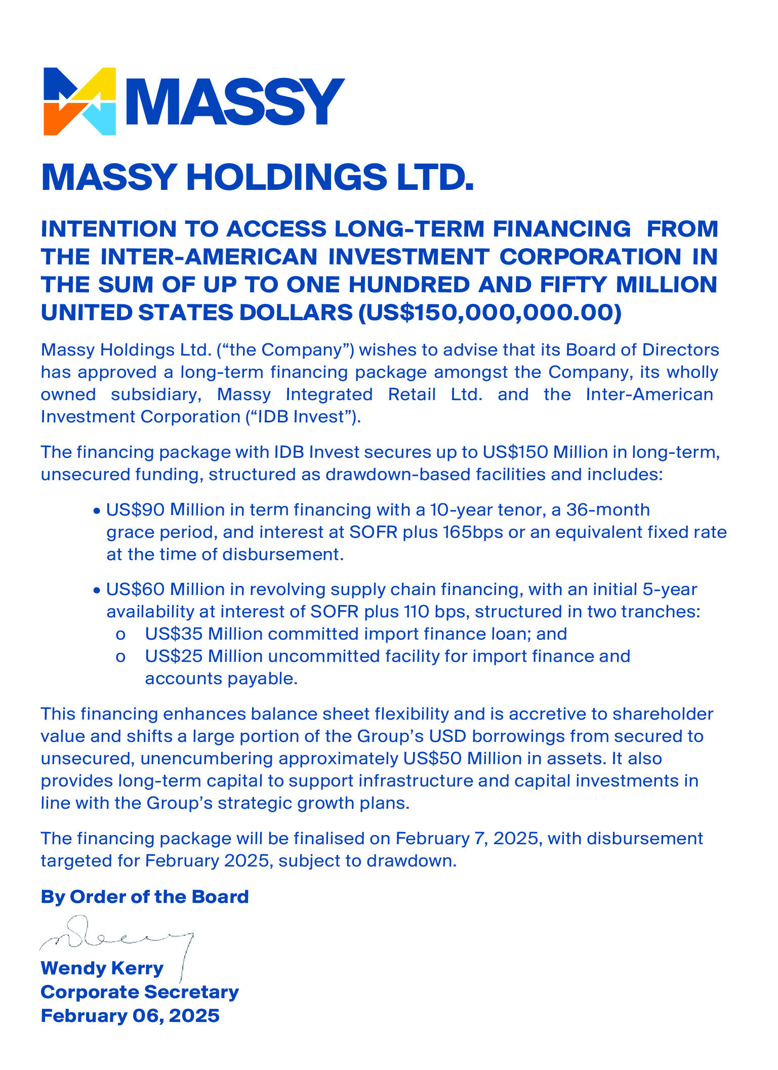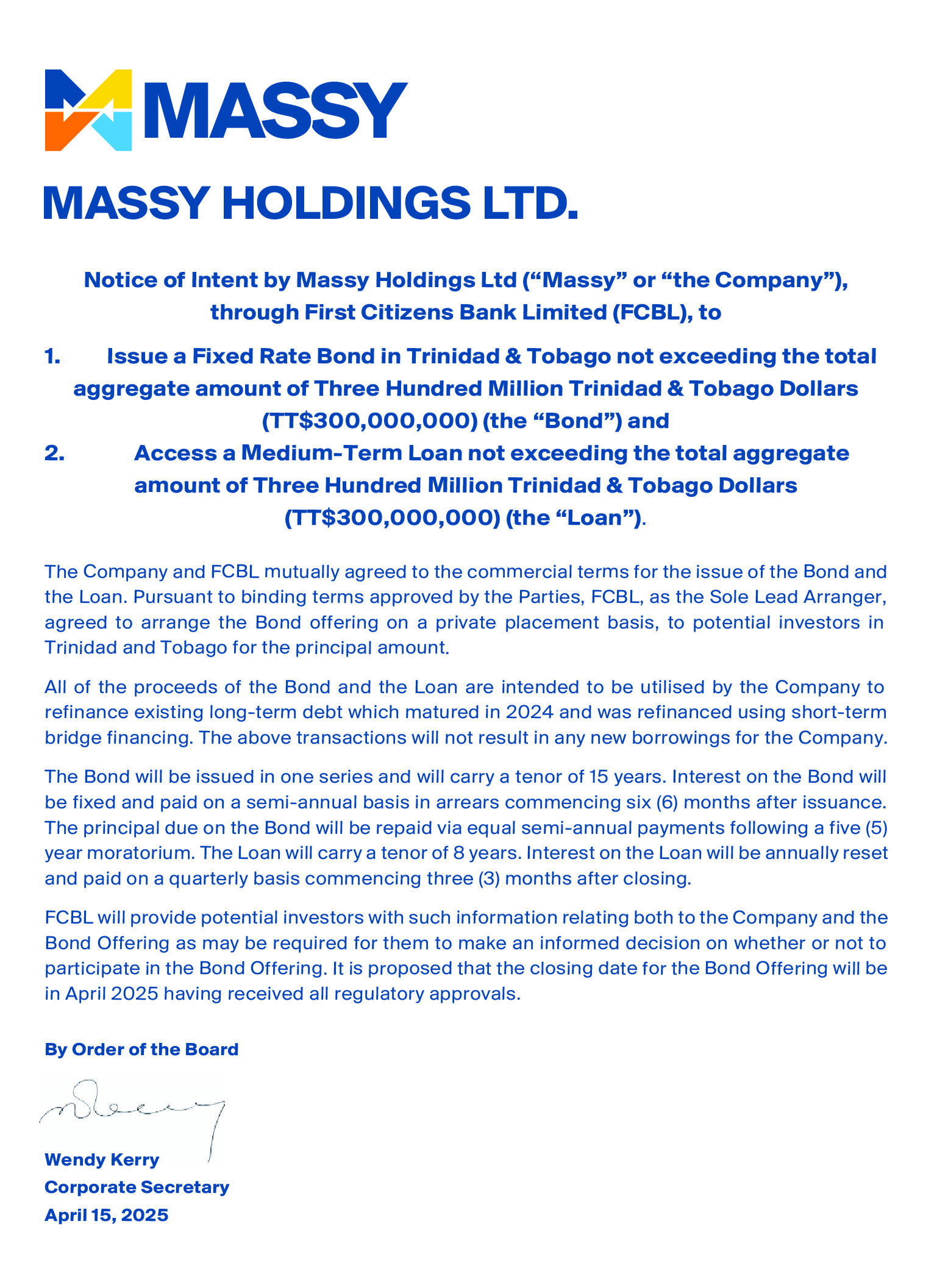 Notice of Maintaining Your Investment in Massy Holdings Ltd